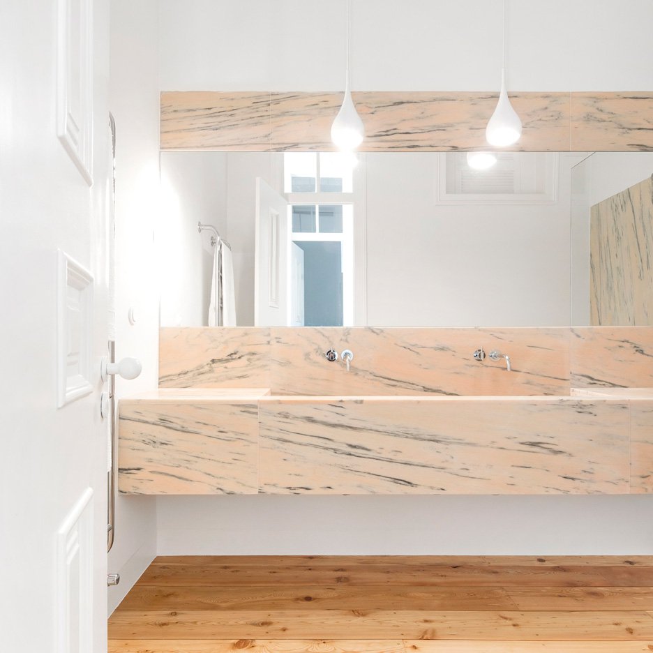 ლისაბონის სახლში ავეჯის რაოდენობა მინიმუმამდეა დაყვანილი. მე -19 საუკუნით დათარიღებული ლურჯი ფერის კერამიკული ფილები ხელუხლებელი დარჩა, რაც თანამედროვე ინვენტართან საინტერესო კონტრასტს ქმნის. სახლის აბაზანაში გამოყენებულია ატმისფერი და ნაცრისფერი მარმარილო, რაც გარდა ესთეტიური თვისებებისა, ფუნქციურად და სტრუქტურულად ეხმარება სივრცეს.