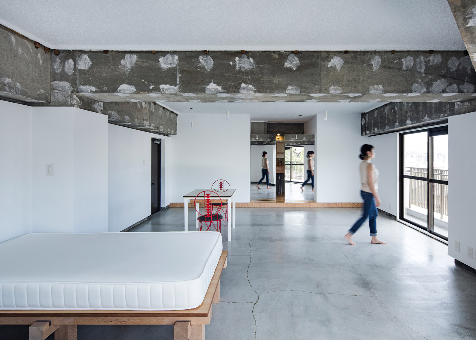 FrontOfficeTokyo-მ გამოიყენა მინიმალისტური სტილი იმისათვის, რომ პატარა ბინა, რომლის ზომა 50 კვადრატული მეტრია, უფრო ფართო  და სივრცული გამხდარიყო.