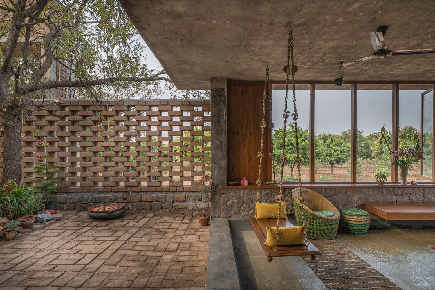 ჰიდერაბადში, ინდოეთში მდებარე ეს ფერმის სახლი ეკომეგობრულია – მის ასაგებად არქიტექტორებმა ისეთი პროექტი შეიმუშავეს, რომ არ დაზიანებულიყო ლანდშაფტი და შენობა ორგანული მასალებისგან ააშენეს. სახლი იდეალურად ერგება მიმდებარე გარემოს, ხისა და გამომწვარი ავეჯის დუეტის ჰარმონიულობა მას ოჯახურ იერს აძლევს.
