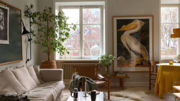 ინტერიერში გამოყენებულია ულამაზესი ვარდისფერი საღებავი კედლებისთვის, რომელიც იდეალურად ეხამება ბინის თეთრ იატაკსა და ნაცრისფერ და ქვიშისფერ დეკორს. აქვეა მდოგვისფერი სკამებიც, რაც საკმაოდ სასიამოვნო კონტრასტს ქმნის საერთო ფონთან მიმართებაში.