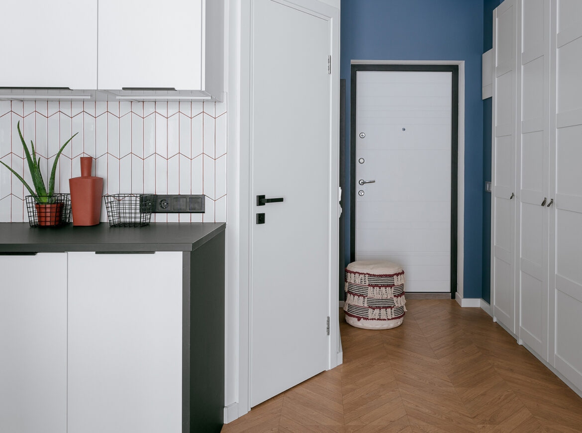 დამკვეთი ახალგაზრდა წყვილია, რომელიც დროის უმეტეს ნაწილს სახლში ატარებს. პირველ რიგში აუცილებელი იყო კომფორტული სამუშაო ზონის ორგანიზება ორი ბავშვისთვის, ასევე სრულფასოვანი სამზარეულოს მოწყობა შეზღუდულ ფართზე – ბინის მესაკუთრეებს უყვართ სტუმრების მიღება და საჭმლის მომზადება.