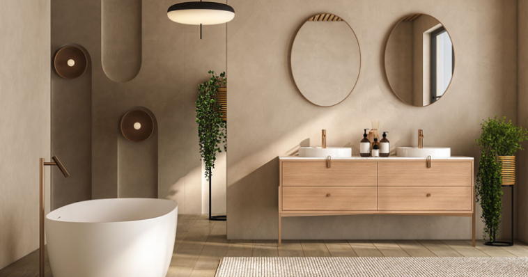 როგორც უკვე აღვნიშნეთ, თანამედროვე დიზაინი სულ უფრო და უფრო ემშვიდობება კლასიკურ თეთრ და ცივ ინტერიერს და ამის ნაცვლად, აქტუალური ხდება ბუნებით შთაგონებული, თბილი, ჰაეროვანი ტონები. ყავისფერი სააბაზანო კომფორტისა და დასვენების გრძნობას აღვიძებს და მას განსაკუთრებით უხდება ტერაკოტას, ღია ხისფერი ან მომწვანო ფერის ელემენტები, რომლებიც შეგიძლიათ დაამატოთ აქსესუარების სახით. ნეიტრალური ყავისფერი იდეალური ფონია მდიდრული და მიმზიდველი ატმოსფეროს შესაქმნელად.
