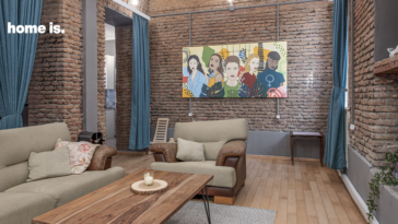 ნინოშვილის ქუჩაზე მდებარე სახლის ყველა ნაწილში აგურის კედლებს ვხვდებით, რომლებიც ინტერიერის ხასიათს განსაზღვრავს. აგური კლასიკურ სტილს ქმნის. მუქი ფერის აქცენტების დამატებით საოცრად ელეგანტური დიზაინი მიიღება.