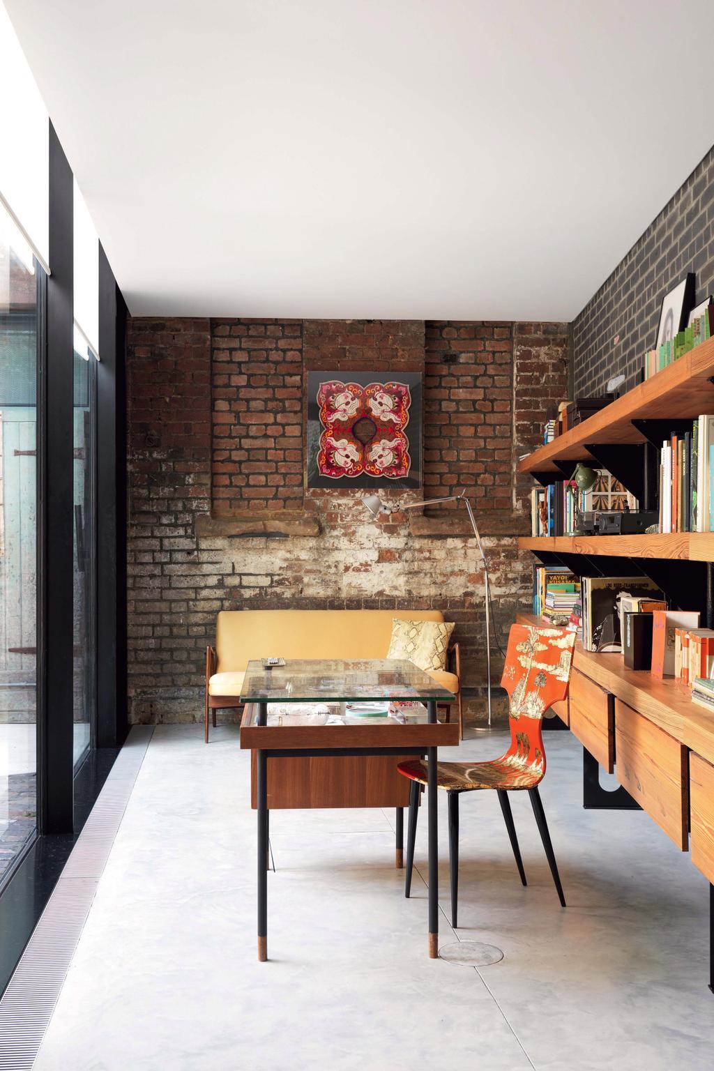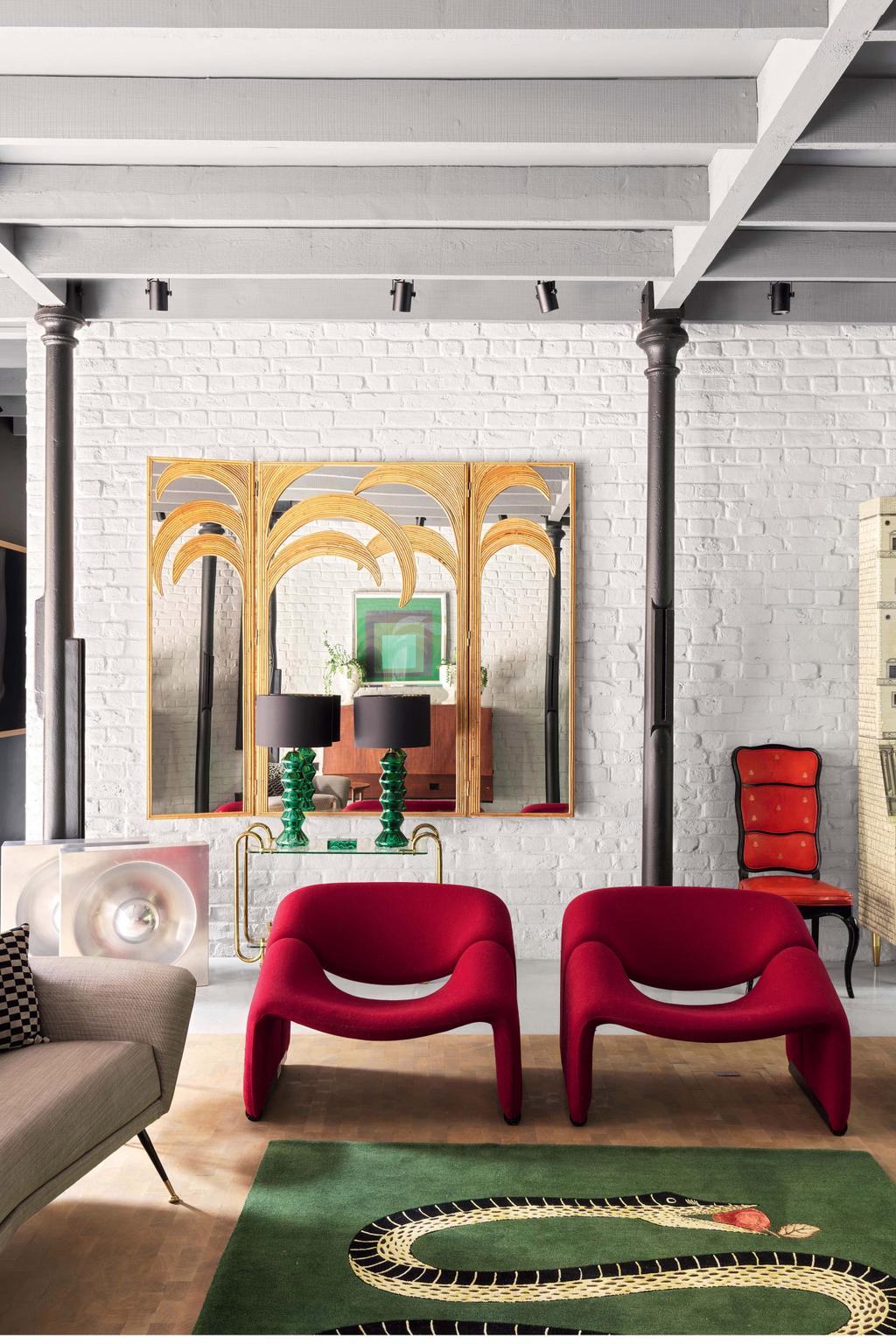 დივანი – Ico Parisi, Heals. კაბინეტი და ხალიჩა – Piero Fornasetti. სარკე – Paris flea market.