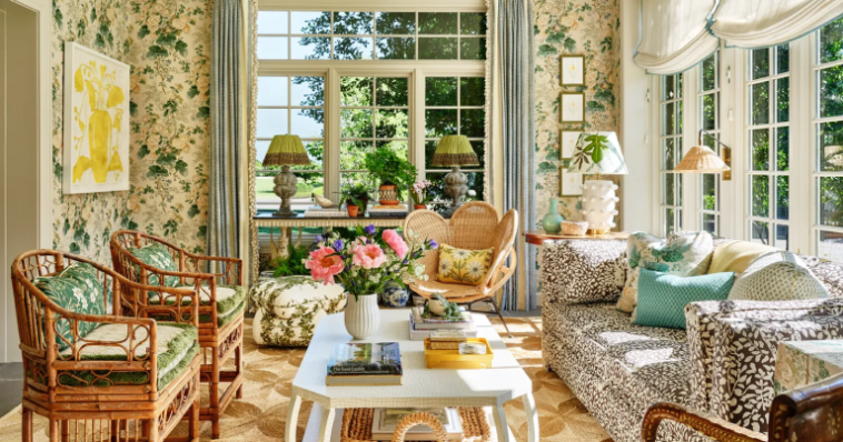 სახლში უხვად ვხვდებით ძვირადღირებულ ქსოვილებს და ფერთა მრავალფეროვან პალიტრას. კედლებზე ძირითადად ტექსტურირებული საღებავები და შპალერებია გამოყენებული, რომლებსაც ბალიშები, ფარდების ფერები და ძვირადღირებული, ანტიკვარული ნივთები ეხამება.