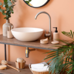 სამზარეულოს კარადებთან არსებული კედელი თითქოს ძველი ხის კარისგანაა დამზადებული. ნიჟარის უკანა კედლის ნაწილი კი ყვავილების გამოსახულებიანი ფილებით არის მოპირკეთებული.
