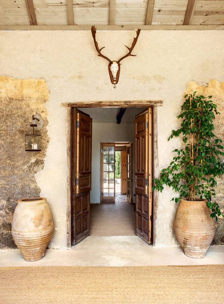 ეს კი მისაღები ოთახის კარია, რომელსაც გვერდს უმშვნებენ ძველი, დიდი ზომის ქოთნები, ხოლო ზემოთ კი – ირმის რქები.