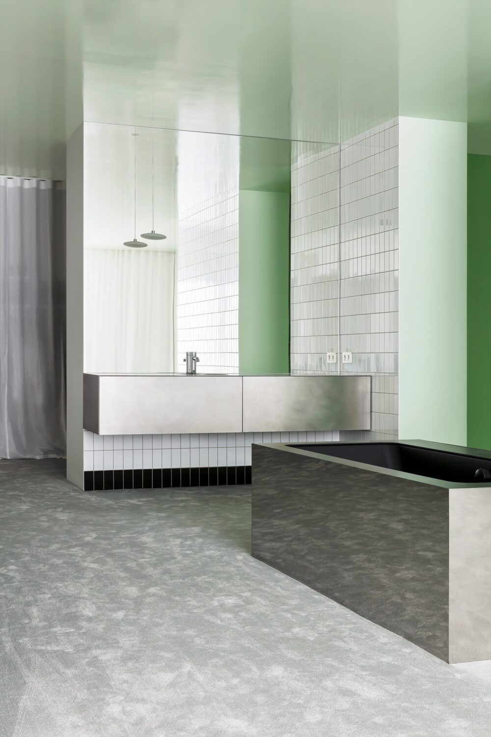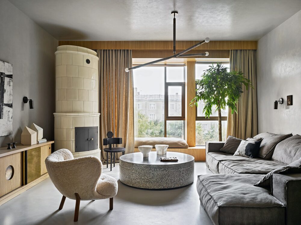 ფინეთის ყურეში მდებარე ამ ბინის ინტერიერი კი ერთი შეხედვით ბეტონით შესრულებული ჩანს, თუმცა დაკვირვების შემდეგ აღმოაჩენთ, რომ ქ კერამოგრანიტთან გვაქვს საქმე.