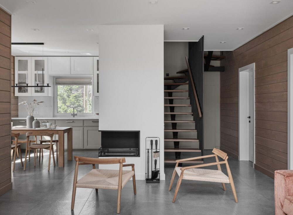 ბეტონის იატაკები სასტუმრო და სასადილო ოთახებში
