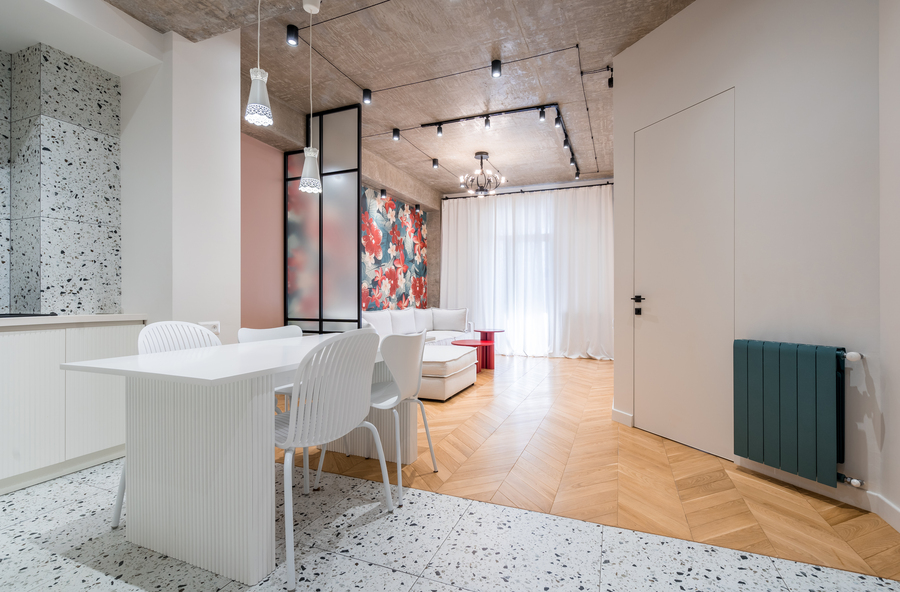 რუსა თუმანიშვილმა წარმატებით მიაღწია დასახულ მიზანს და საპროექტო დავალებას იდეალურად გაართვა თავი. დამკვეთის სურვილის თანახმად, ბინაში გვხვდება ბევრი მკვეთრი ფერი, რაც დიზაინერმა სადა, საბაზისო ფერებით დააბალანსა. ამას გარდა, პროექტში გამოყენებულია ბეტონის ჭერი. ამ ტექნიკის საშუალებით ინტერიერი ნაკლებად “მსუყე” ჩანს, ვინაიდან ბეტონი თავისთავად არის უხეში და საკმაოდ მძიმე მასალა, რაც საერთო ჯამში, სივრცეში იდეალურ ბალანსს ქმნის.