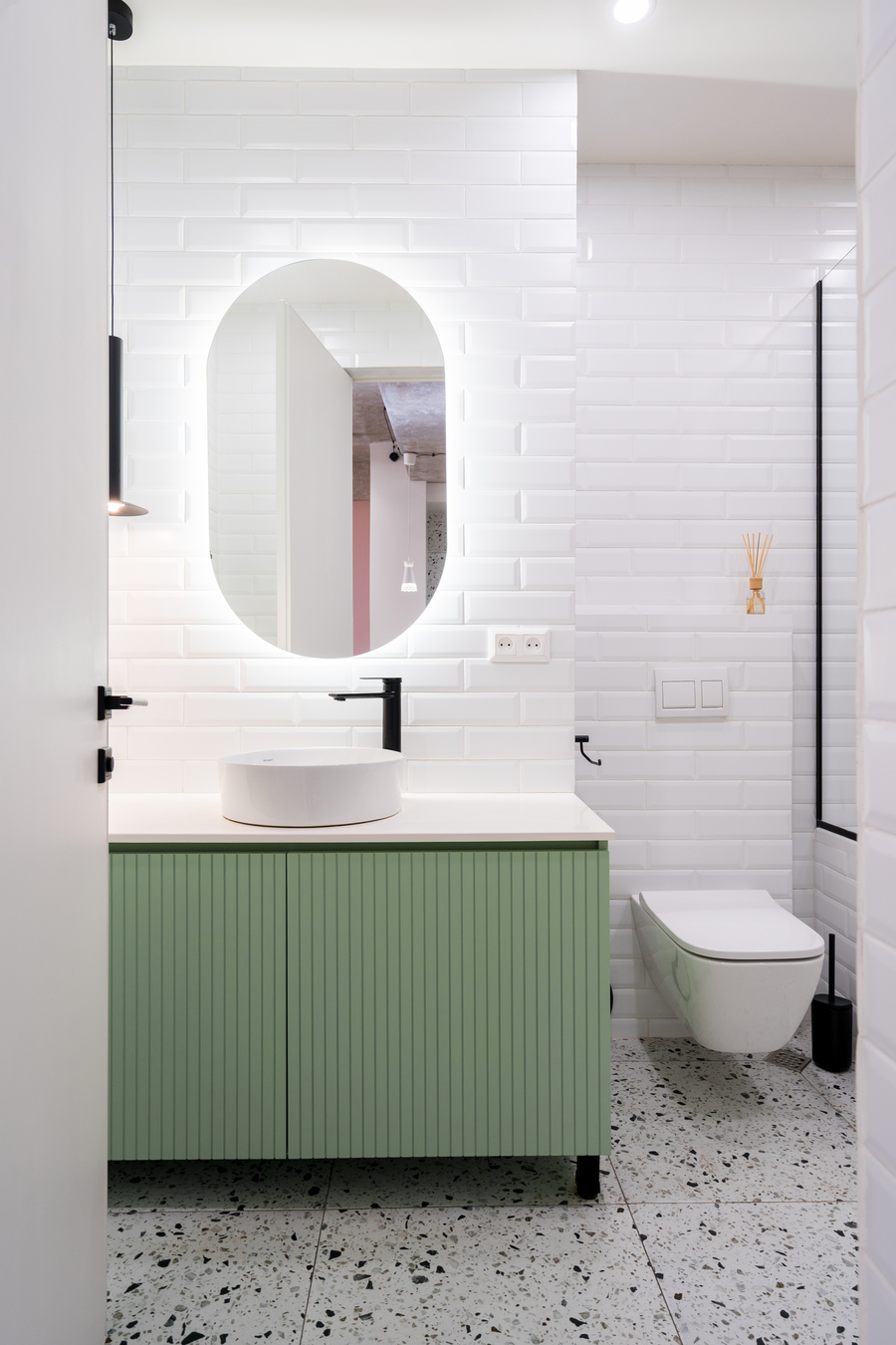 ორ-ოთახიანი სტუდიოს ტიპის ბინა, რომლის ფართობი 53 კვადრატულ მეტრს შეადგენს, ატენის ქუჩაზე მდებარეობს და მის დიზაინზე THE WALL Design Studio-ს დამფუძნებელმა, რუსა თუმანიშვილმა იმუშავა. პროექტის ავტორის თანახმად, დამკვეთს მთავარი მოთხოვნა მდგომარეობდა იმაში, რომ ბინას ჰქონოდა ბევრი ფერადი აქცენტი და არ დაკარგულიყო სივრცის აღქმა.