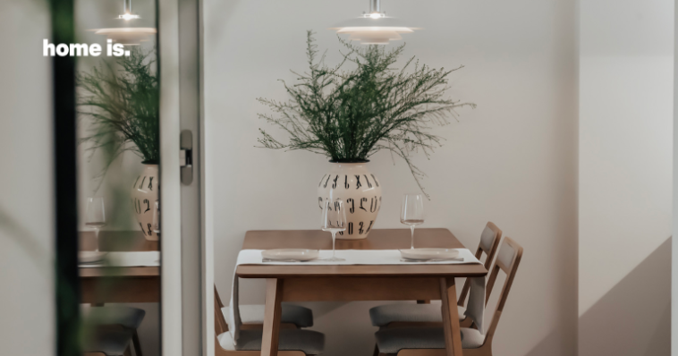 სასადილო ზონაში განთავსებულია მცირე ზომის ხის მაგიდა და სკამები, რომელთაც ინტერიერში საინტერესო დეკორატიული დატვირთვაც აქვს. სასადილო მაგიდის თავზე გვხვდება ჭერის სანათი, რომელიც ამ ზონას მეტად გამოკვეთს და ქართული ანბანის პრინტის ლარნაკი, რომელიც ინდივიდუალურ და საინტერესო შტრიხს სძენს ოთახს.