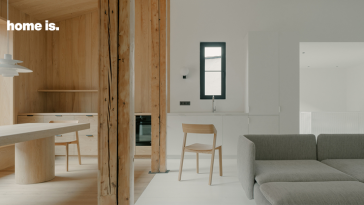 ინტერიერი პასტელურ ღია ფერებშია გადაწყვეტილი და მასში დომინანტურ როლს ხის მასალა ასრულებს. აქვე გვხვდება ნიკელისა და მინის ფაქტურა, რაც სახლს ბევრად ჰაეროვანსა და სახასიათოს ხდის. განსაკუთრებულ ეფექტს მაღალი ჭერი და ოთახებს შორის თაღები ქმნის, რომელთა მრგვალი ფორმები ავეჯის დეტალებზეც მეორდება.