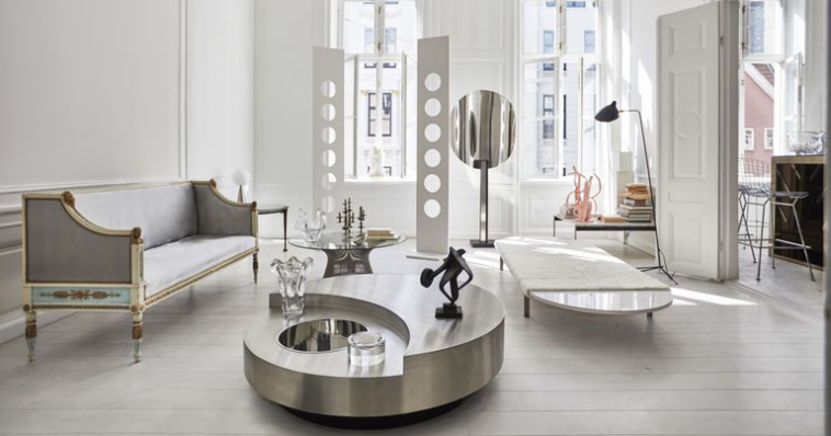განათებები კიდევ უფრო გვამახვილებინებს ყურადღებას ჰელის უნიკალურ ავეჯის კოლექციაზე, რომელშიც შედის კარლო სკარპას (Carlo Scarpa) მაგიდა „Doge”, უილი რიზოს (Willy Rizzo) მბრუნავი ყავის მაგიდა „TGR”, სერჟ მუილის (Serge Mouille) იატაკის სანათი და სხვა უამრავი საოცარი ინტერიერის დიზაინის ექსპონანტი.