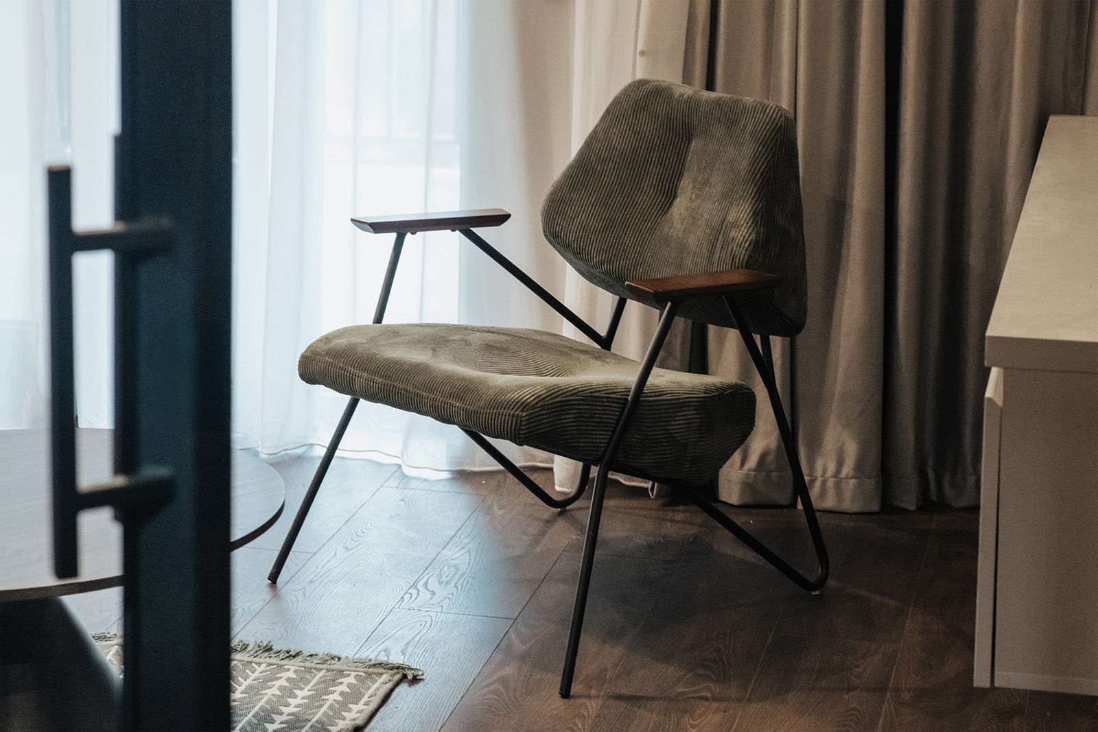 ინტერიერის ავტორის, თაკო ტომარაძის თქმით, ბინა არის მცდელობა მცირე ზომის სივრცეში მაქსიმალურად სრულყოფილი ფუნქციური და ესთეტიკური ჰარმონიის მიღწევისა — და ეს მცდელობა სრულიად წარმატებულია. ინტერიერში არ გვხვდება ზედმეტი ნივთები და გადატვირთული გარემო, ყოველი დეტალი ფუნქციურია და ამავდროულად ემოციური ატმოსფეროს შემქმნელი.
