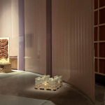 სინათლე, როგორც ბუნებრივი, ისე ხელოვნური, ამ ინტერიერში უმნიშვნელოვანეს როლს თამაშობს. მაღალი კარები და ფანჯრები ოთახში დღის შუქს ბაროკოს სტილის სიმშვიდით უშვებს. დეტალებზე ორიენტირებული სანათები კ ინტერიერის ნეიტრალურ ტონალობას თბილ ელფერს აძლევს.