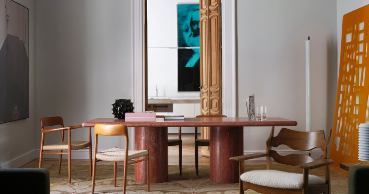 ინტერიერში გამოყენებული ავეჯი — სკანდინავიური და შუა საუკუნეების მოდერნის სტილში გადაწყვეტილი ხის სკამები, რბილი ფორმების დივნები და მარმარილოს მაგიდები — სივრცეს დაბალანსებულ ხასიათს ანიჭებს. ხელოვნების ნამუშევრები, რომლებიც კედლებზე ცოცხლდებიან როგორც ინტელექტუალური დიალოგის ნაწილი, სივრცეს ფიქრისა და ინტერპრეტაციის შესაძლებლობას აძლევენ.