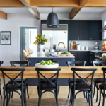 შუშის კარის საშუალებით, საჭიროების შემთხვევაში, სამზარეულო გამოყოფილია მისაღები ზონისგან. თუმცა, აქ ასევე გვხვდება “ფარული სამზარეულოს” სისტემა, რომელიც გულისხმობს ყველა საყოფაცხოვრებო ტექნიკის დამალვას პანელების სისტემით (სურვილის შემთხვევაში). ეს კი სტუდიოს ტიპის ბინებისთვის საკმაოდ გონივრული დიზაინ გადაწყვეტაა.