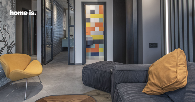 ჩამოყალიბებული კონცეფციის მისაღწევად პროექტის ავტორმა ბინის იმ სივრცეებში, სადაც მობინადრეები ძირითად დროს ატარებენ, გამოიყენა მშვიდი, ნეიტრალური, პასტელური ფერები, რომლებიც საინტერესო დიალოგში შედიან ბეტონის ჭერთან და სხვა ფაქტურებთან. აქვე გვხვდება ბუნებრივი ხის შტრიხები, რომლებსაც განსაკუთრებული სითბო შემოაქვს საცხოვრებელში. ფერადი აქცენტები კი მცირე, ძირითადად ნარინჯისფერი და ყვითელი ჩანართებით არის შეტანილი.