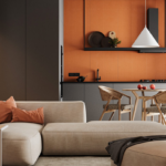 აქცენტის სახით დიზაინერმა გამოიყენა წითელი ფერის “ლაქა”. საუბარია 2.90 მეტრის სიმაღლის კარებზე, რომელიც დომინანტი ელემენტია სივრცეში და მიყვება მთელი ბინის ხასიათს.
