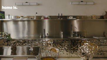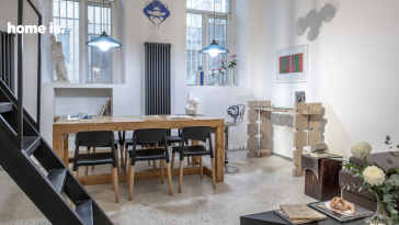 არაორდინალური დიზაინი აქვს სამუშაო მაგიდასაც, რომელიც მთელ კედელზეა გაშლილი და ბეტონის ელემენტებითაა შექმნილი.