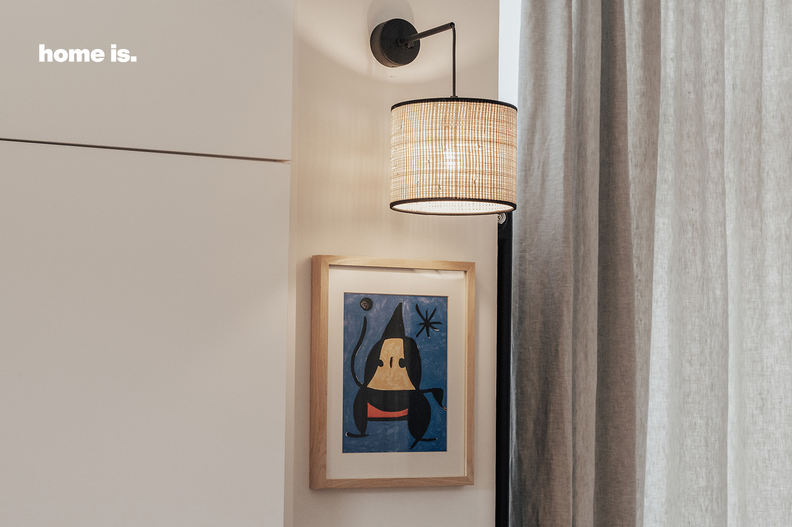 საძინებელი მყუდროებითა და სიმსუბუქით ხასიათდება. ყურადღებით არის შერჩეული როგორც საწოლის დიზაინი, ასევე ტექსტილი და სანათები, რათა ოთახმა მინიმალისტური და დახვეწილი ესთეტიკა შეინარჩუნოს. აქაც მნიშვნელოვანი ფუნქციური და ესთეტიკური დატვირთვა აქვს ხისა და ჭილოფის დესაუს. ყურადღებას იქცევს გურამ წიბახაშვილის ნამუშევრებიც, რომლებიც ხის ჩარჩოშია ჩასმული.