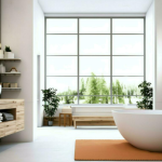 აბაზანაში პასტელური ფერები დომინირებს, თუმცა მკვეთრი აქცენტის სახით ყვითელი დეტალები გვხვდება, რაც სივრცეს ბევრად ცოცხალს და საინტერესოსა ხდის.