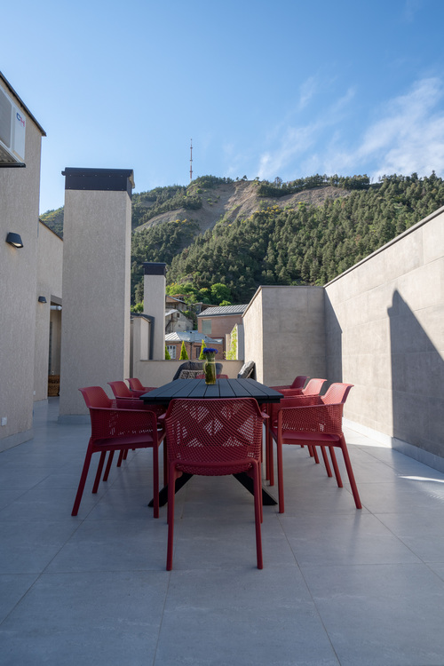ამას გარდა, ბინას აქვს ულამაზესი ხედების მქონე დიდი ტერასა, რომელიც ზაფხულის პერიოდში სასადილო ოთახისა და სტუმრების მისაღები სივრცის ფუნქციასაც ითავსებს.