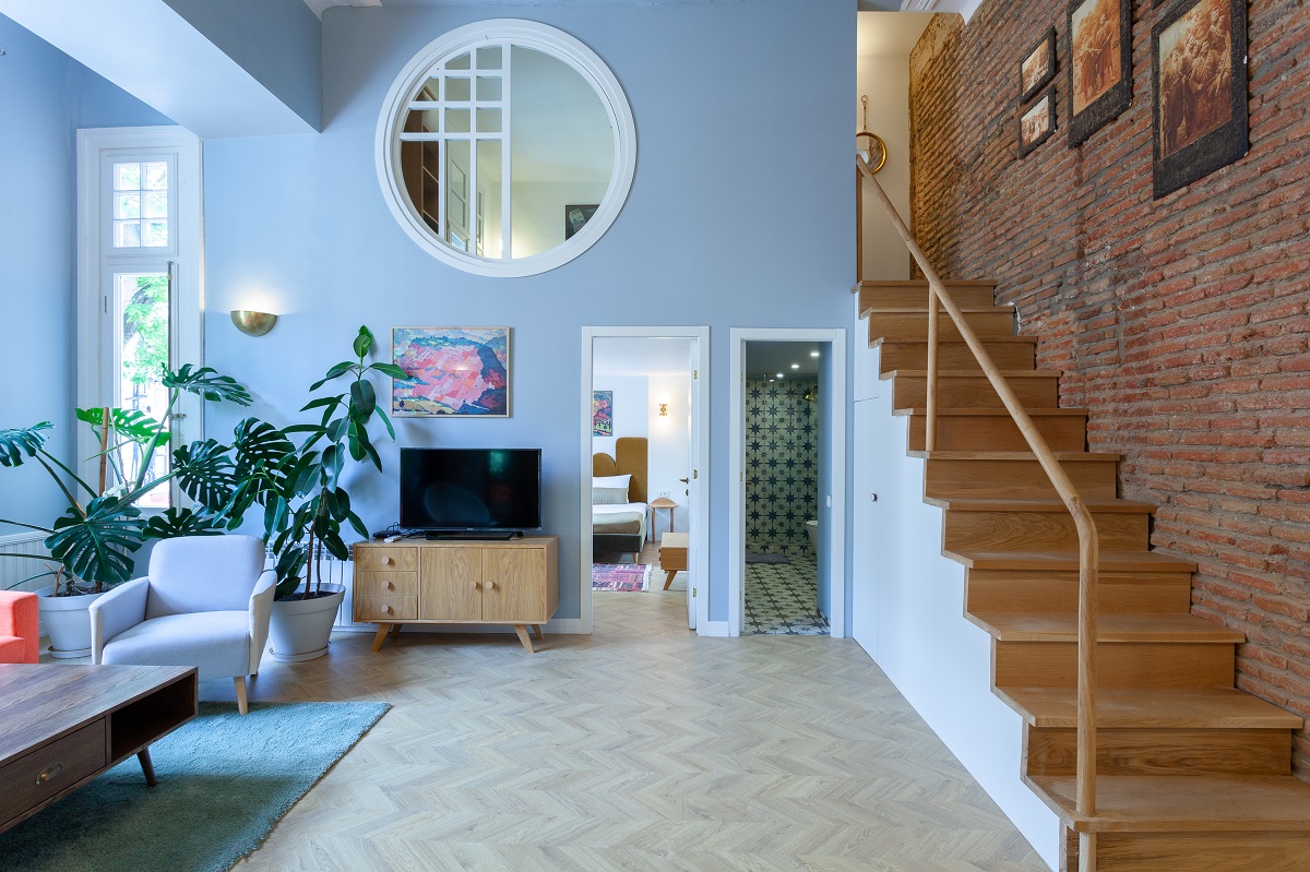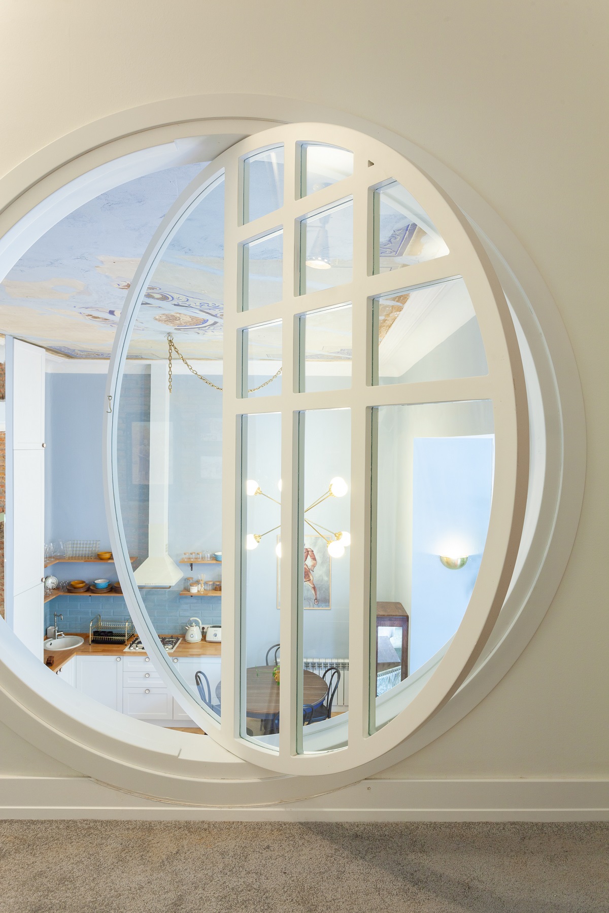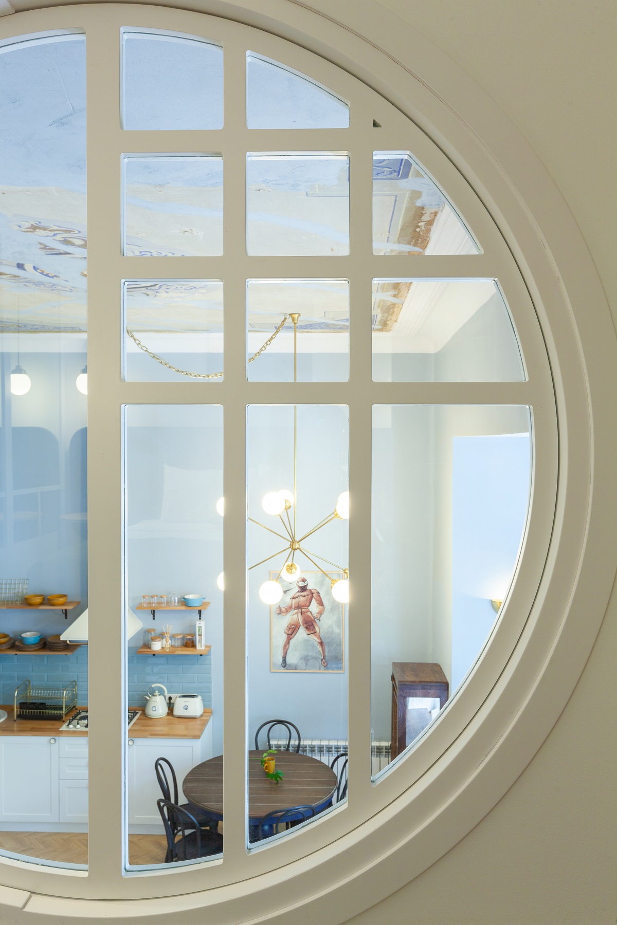 ყურადღებას იქცევს ინტერიერში არსებული მრგვალი ფანჯარა, რომელიც დიზაინერმა სახლში არსებული ფანჯრების გათვალისწინებით შეიმუშავა. სწორედ ამ ფორმით მოხდა მე-19 საუკუნეში დაპროექტებული შენობის არქიტექტურული ელემენტის ხაზგასმა ინტერიერში და მისი ტრადიციული შტრიხების ახალ დიზაინთან შერწყმა.