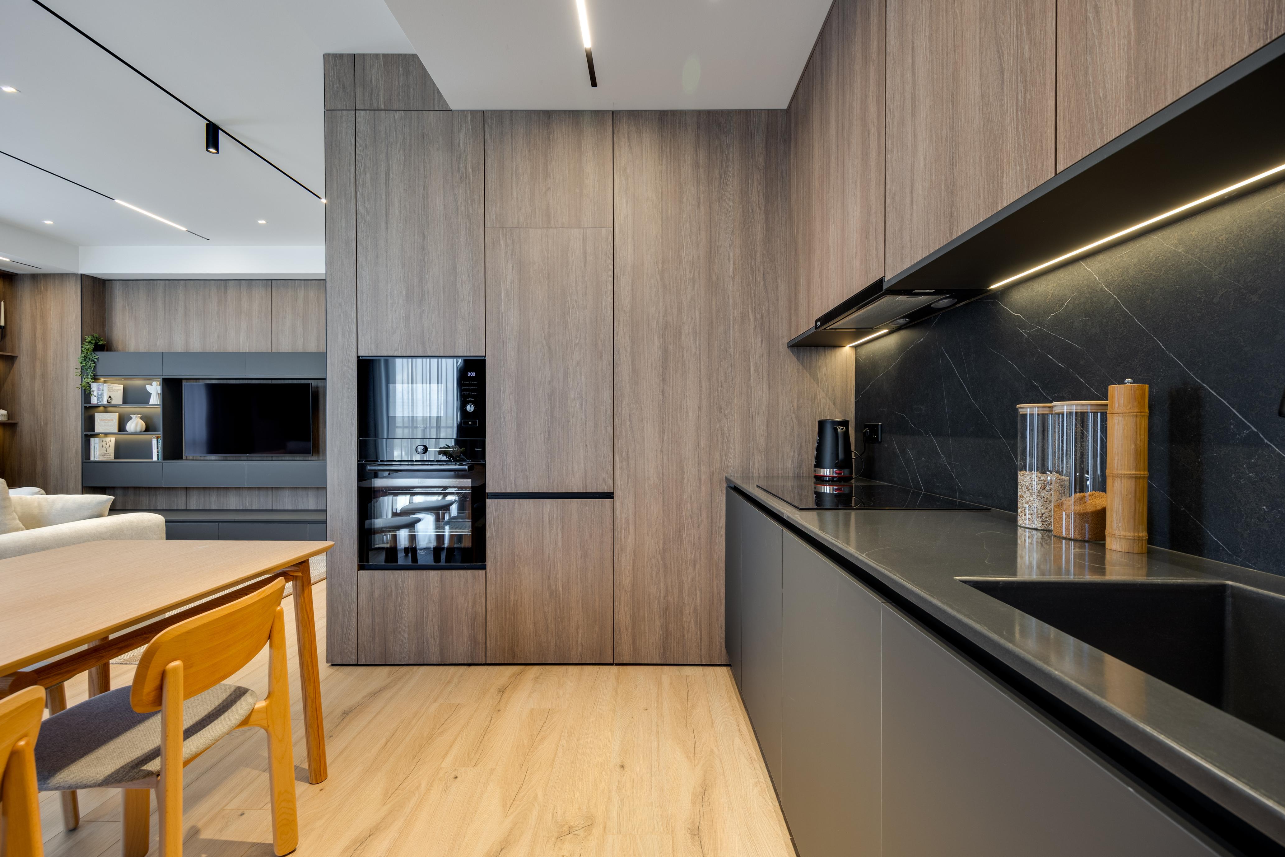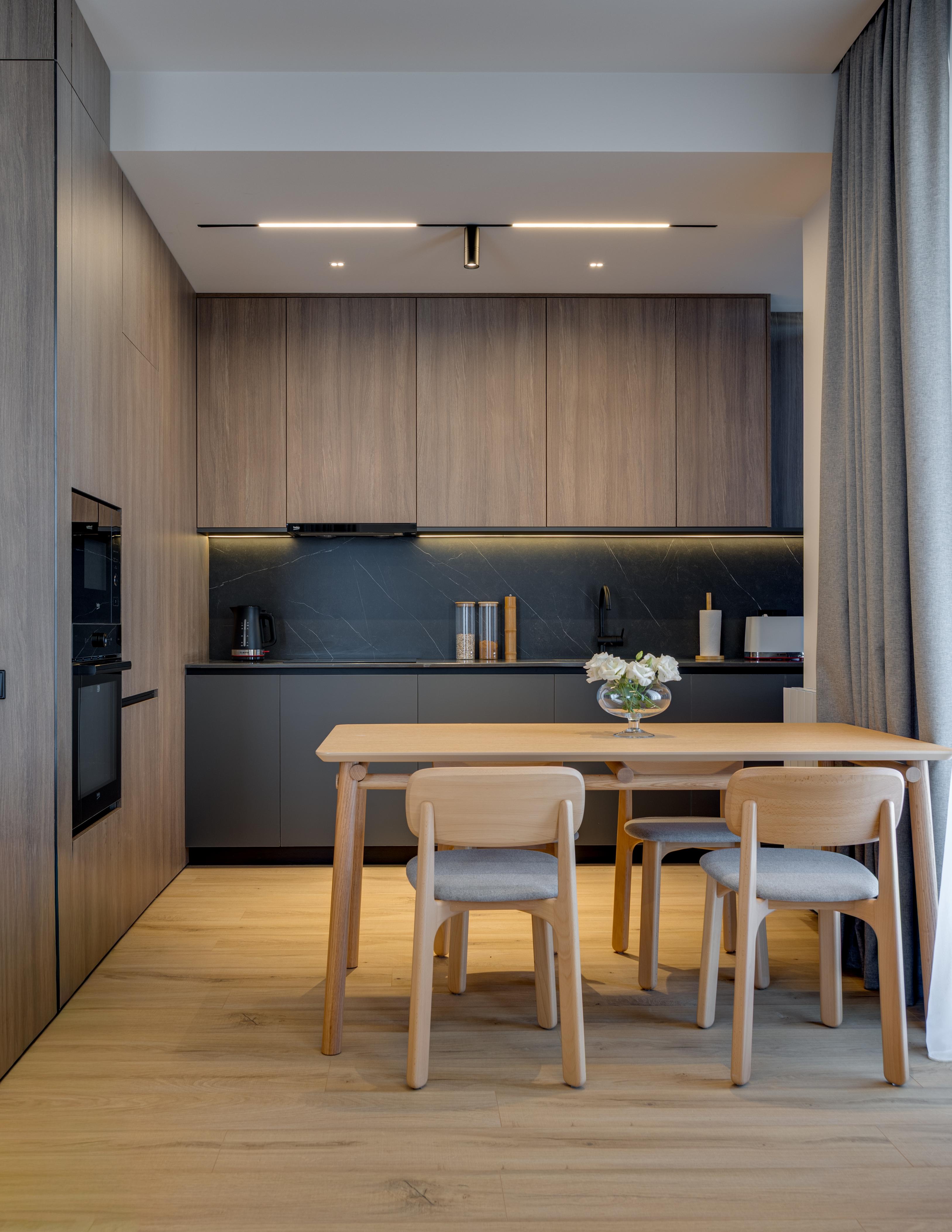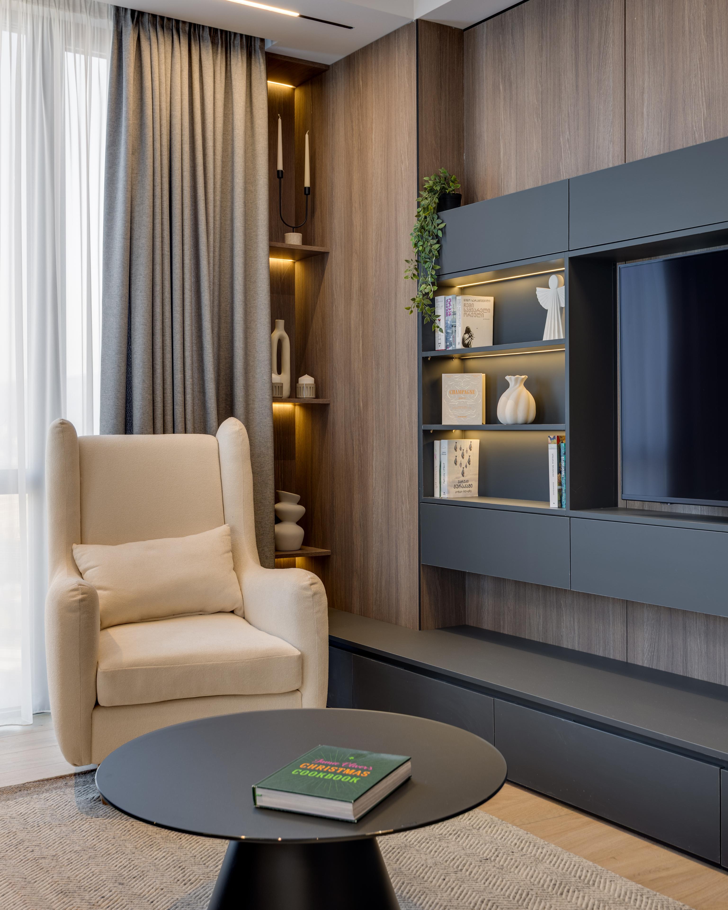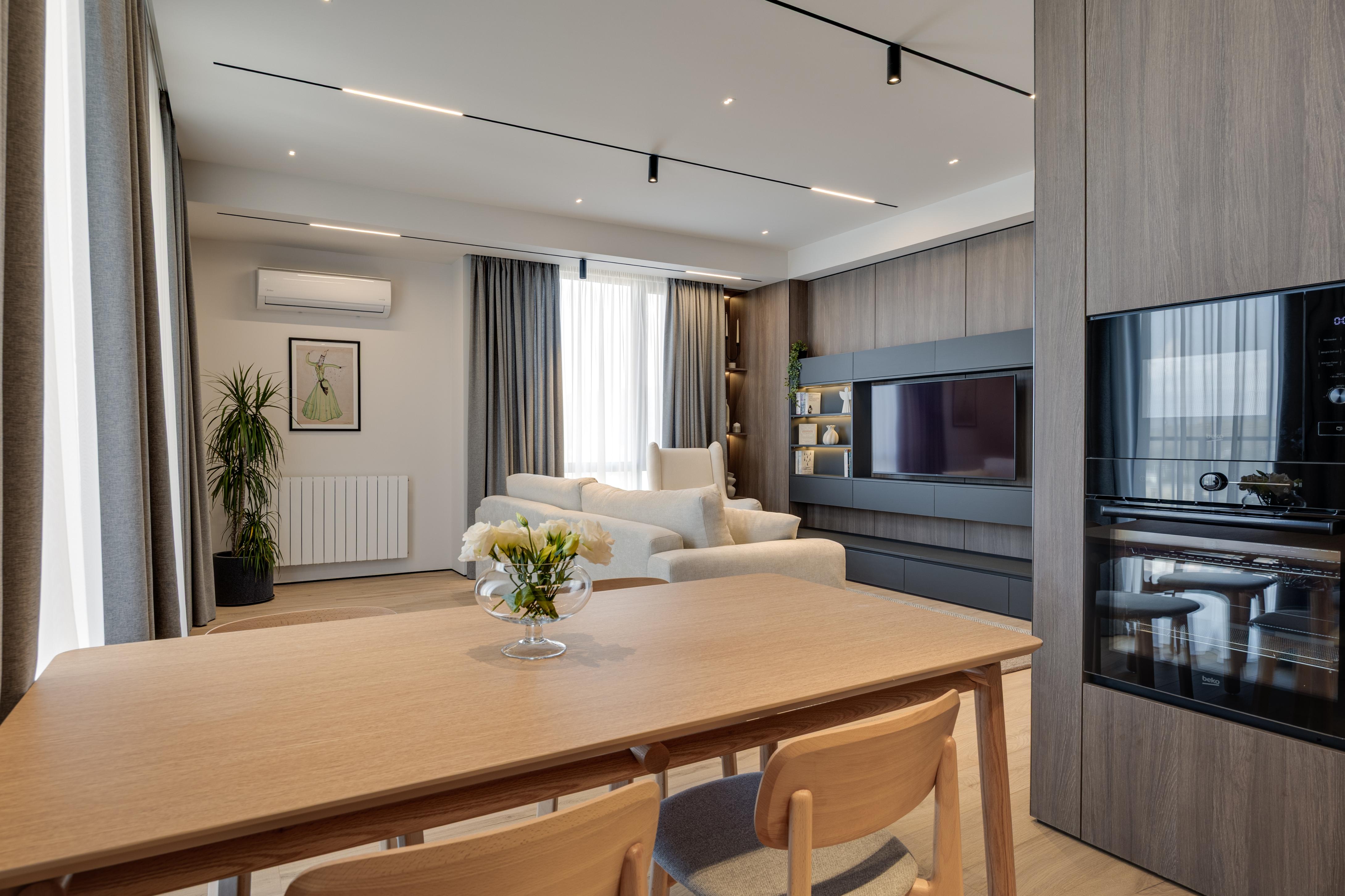 ეს არის ბინა, სადაც სიმარტივე არ ნიშნავს სიცარიელეს — პირიქით, სწორედ მინიმალისტური მიდგომა აძლევს შესაძლებლობას, თითოეულ ტექსტურასა და მასალას ჰქონდეს საკუთარი როლი საერთო ატმოსფეროს შექმნაში. ბუნებრივი სინათლე, ხის ელემენტები და ნეიტრალური ტონები აქ იქცევა ერთიან ესთეტიკურ ენად, რომელიც გამოხატავს ავტორების ფაქიზ გემოვნებას და თანამედროვეობის გრძნობას.