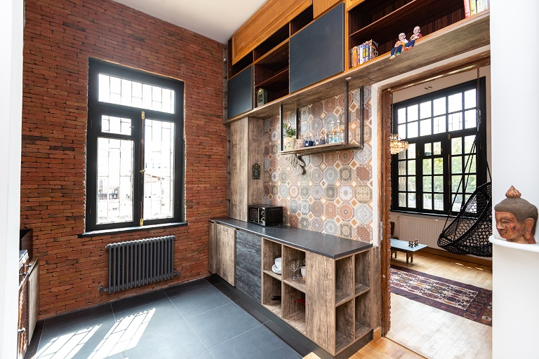 აღნიშნული სახლი დიმიტრი უზნაძის ქუჩაზე მდებარებს. შენობა აგებულია XIX საუკუნის ბოლოს და ბინაში არსებული უნიკალური აივნის გამო მას კულტურული მემკვიდრეობის სტატუსი აქვს მინიჭებული. სწორედ აქედან გამომდინარე, პროექტში აღდგენილ იქნა ყველა ის ძველი შტრიხი, რისი შენარჩუნებაც შესაძლებელი იყო, რათა მობინადრეებს არ დაეკარგათ შენობის ხანგრძლივი ისტორიისა და უნიკალურობის განცდა. ამას გარდა, პროექტის ავტორები შეეცადნენ, რომ ყველა დეტალი მაქსიმალურად მორგებული ყოფილიყო თანამედროვე საჭიროებებზე.