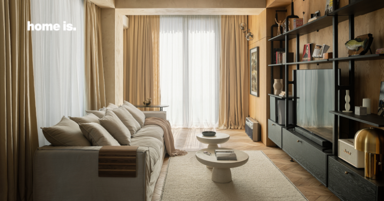საცხოვრებლის დიზაინის კონცეფცია აბსტრაქტული და გეომეტრიული ფორმებითაა შთაგონებული, აქცენტი კი ხის ფაქტურაზე, ბუნებრივ მასალასა და კონტრასტულ ფერებზე კეთდება, რაც ბინას სიმყუდროვეს, სიმარტივეს და სახასიათო ესთეტიკას სძენს.