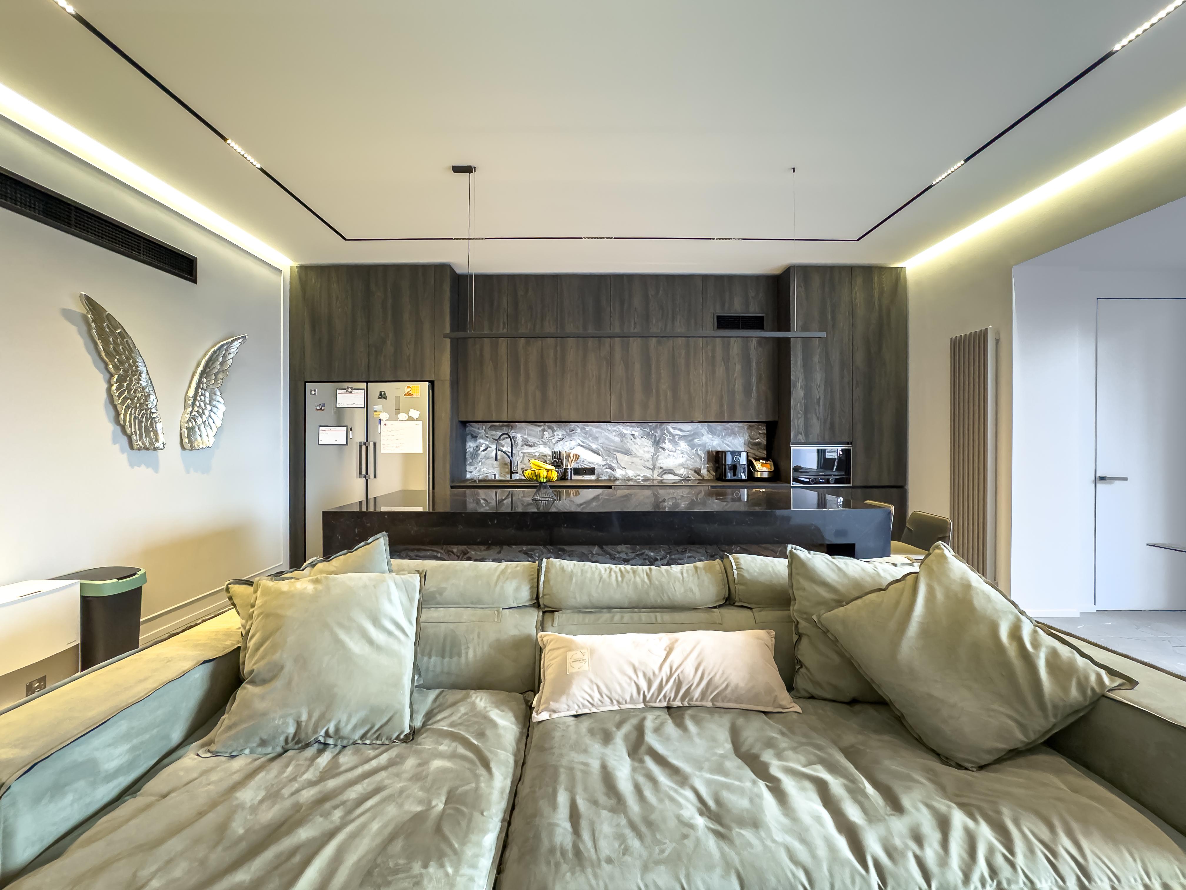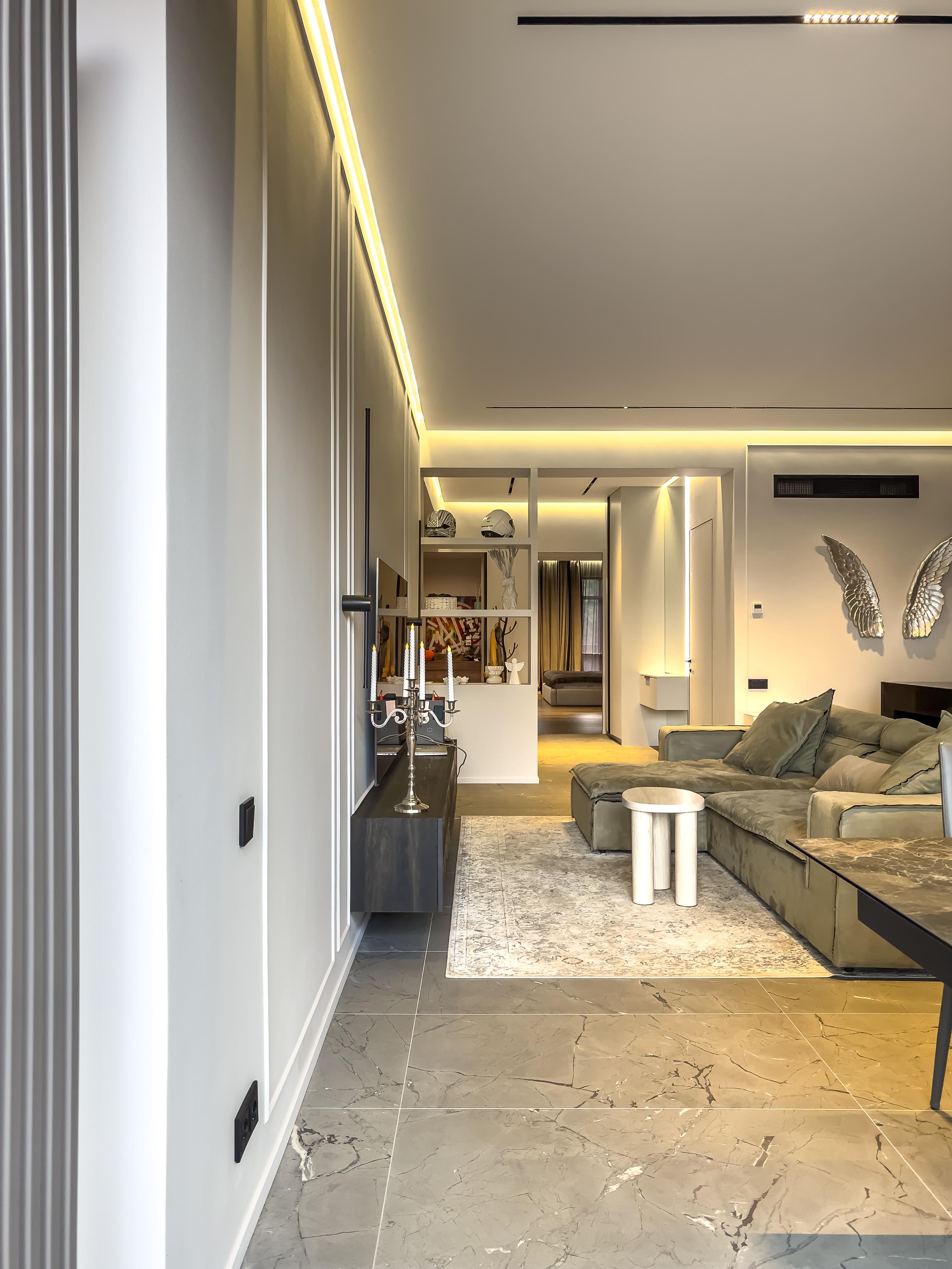 ნინო გორგილაძის პროექტი ხაზგასმით აჩვენებს, თუ როგორ შეიძლება მკაცრი ვიზუალური და ფუნქციური შეზღუდვების პირობებში შეიქმნას ჰარმონიული, თბილი და ამავდროულად ვიზუალურად ეფექტური საცხოვრებელი გარემო.