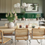 განსაკუთრებული ყურადღება ეთმობა სასადილო ზონას, რომელიც მდებარეობს მინა ბლოკის ტიხართან. აქ შავი მრგვალი მაგიდა და შავთეთრი „პეპიტას“ პრინტით დამზადებული ბენჩი სივრცის ზოგად იდეას აგრძელებს.
