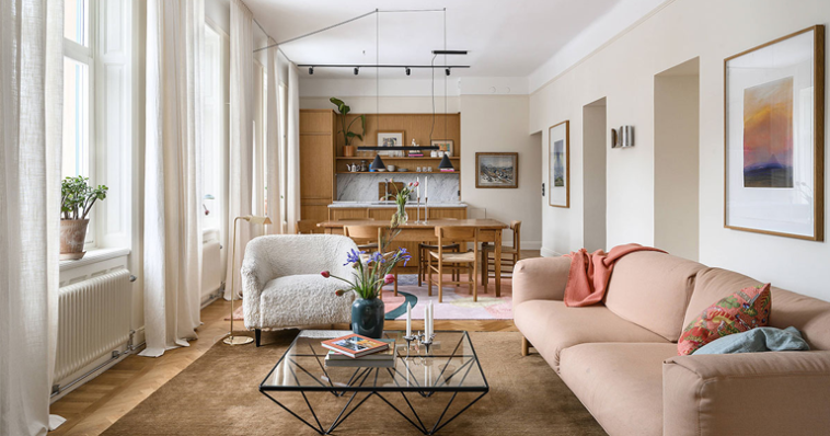 როგორც ცნობილია, სკანდინავიელები თეთრი და ნაცრისფერი ინტერიერების შექმნის ნამდვილი ოსტატები არიან, თუმცა, როდესაც იცინი სხვა ტონებს იყენებენ სივრცეში, შედეგი ასევე ძალიან კარგი გამოდის. ამის ნათელი მაგალითია ეს ბინა სტოკჰოლმში, სადაც დიზაინერებმა სხვადასხვა ელფერის მქონე პასტელური ტონები გამოიყენეს და სივრცეს გაზაფხულის იერი შესძინეს.