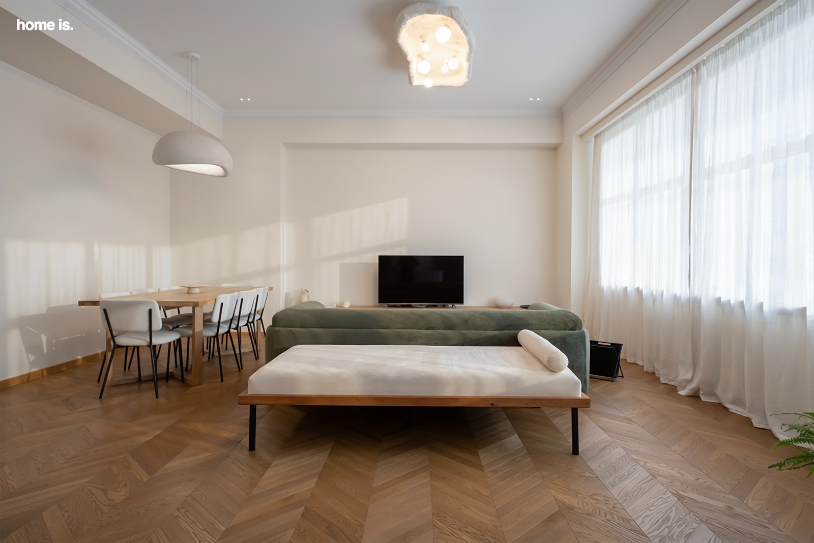 ინტერიერის საერთო სტილი ეფუძნება მინიმალიზმსა და გააზრებულ სიმარტივეს. სივრცეში ნაკლები ნივთია გამოყენებული, რაც თითოეულ ელემენტს თავის მნიშვნელობას უნარჩუნებს და ბინას ჰაეროვან, მსუბუქ ატმოსფეროს სძენს. აქ არ გვხვდება გადატვირთული დეკორი ან ზედმეტი აქცენტები — ყველაფერი ემსახურება ერთ მთავარ იდეას: შეიქმნას გარემო, რომელიც ხელს უწყობს მშვიდ ცხოვრებას და ყოველდღიურ კომფორტს.