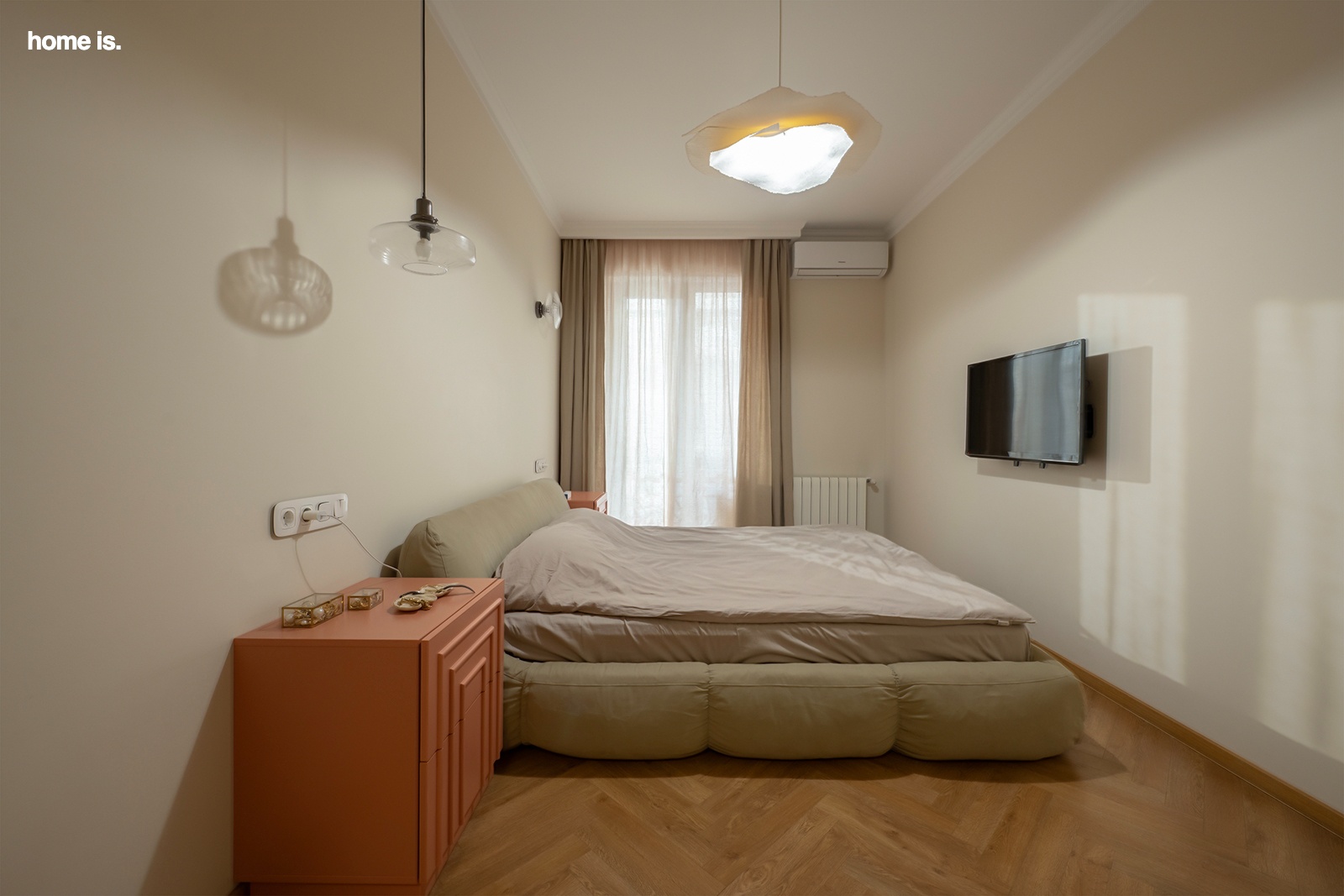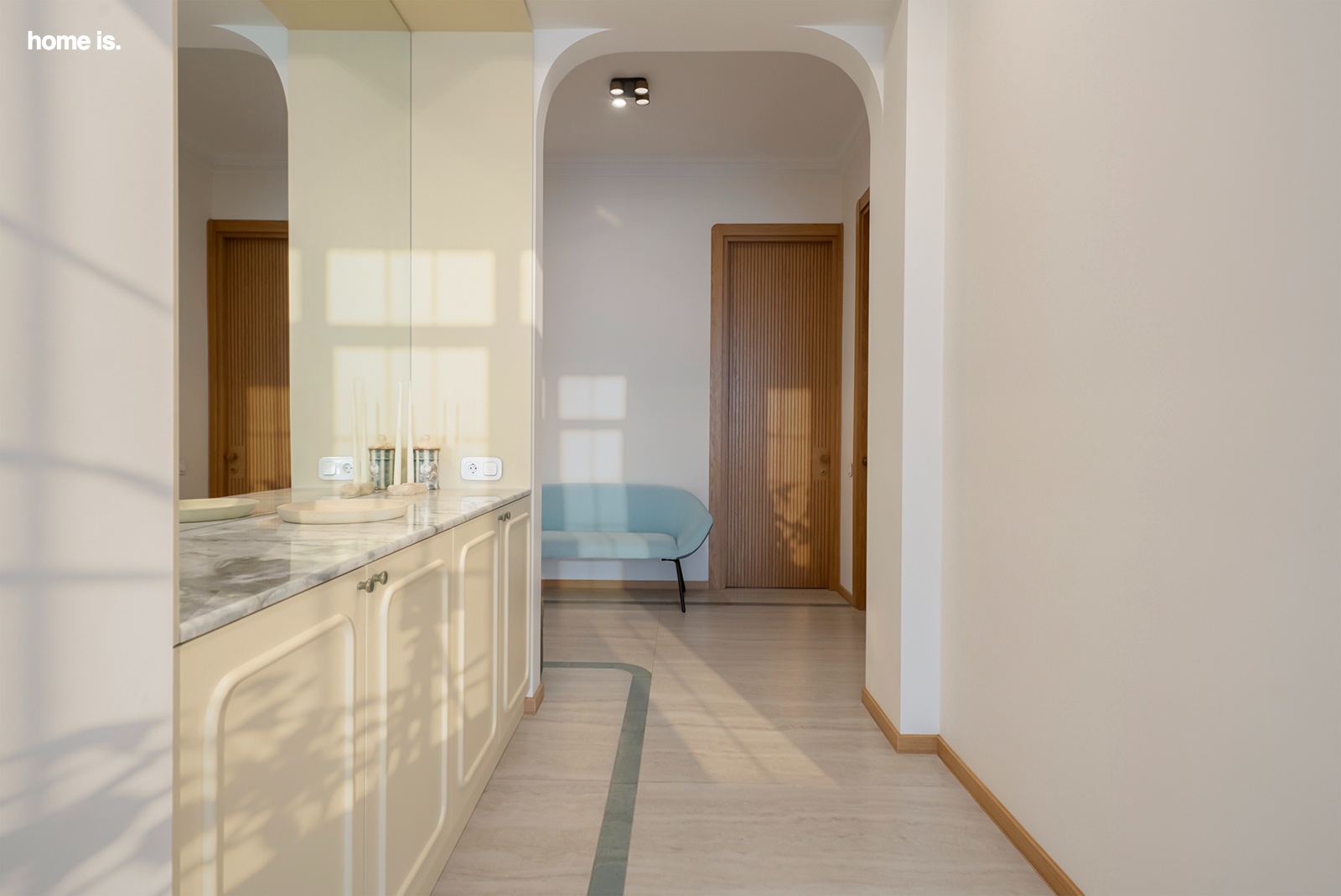 საბურთალოზე, მიცკევიჩის ქუჩაზე მდებარე 180 კვ.მ ბინა წარმოადგენს სივრცეს, სადაც ფუნქციურობა, ბუნებრივი ესთეტიკა და ყოველდღიური კომფორტი ჰარმონიულად ერწყმის ერთმანეთს. სახლის მეპატრონე, ბუკა დუმბაძემ, ინტერიერის შექმნის პროცესში განსაკუთრებული ყურადღება დაუთმო სიმარტივეს, სისუფთავესა და დეტალების გააზრებულ შერჩევას, რაც მთლიანობაში მშვიდ და დაბალანსებულ გარემოს ქმნის.