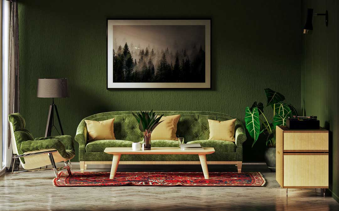 მწვანე ფერის მონოქრომული პალიტრა ბუნებასთან, სიმწვანესთან და ტყესთან ასოცირდება, შესაბამისად, მას დამამშვიდებელი ეფექტი აქვს და შინაგან ჰარმონიასთან, პოზიტივთან და ახალ ენერგიასთან არის დაკავშირებული. იმის გამო, რომ მწვანე ფერის განსხვავებული ტონალობების ფართო პალიტრა არსებობს, ისინი შესაძლებელია სხვადასხვა დანიშნულებით გამოვიყენოთ. მაგალითად, თუ სივრცის მთავარ ტონალობად ღია ზეთისხილისფერს შეარჩევთ, აქცენტების სახით კი მუქ მწვანე ტონს გამოიყენებთ, საინტერესო კონტრასტს შექმნით და სივრცეს მიმზიდველობას შემატებთ.