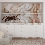 კოლექციის დიზაინი აგებულია ტრადიციულ ელემენტებზე: პროფილირებული კარნიზები, ფიგურული კრონშტეინები, ქვისგან დამზადებული ზედაპირები. ამოტვიფრული მინა, ხელის მხატვრობა და ლითონის ჩანართები კოლექციას განსაკუთრებულ ხიბლს ანიჭებს. საერთო კომპოზიცია აერთიანებს ღია თაროებს, მოჭიქულ კარადებსა და მოდულებს ყრუ კარებით.