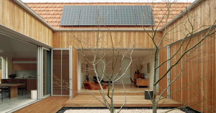 Courtyard House არის მემკვიდრეობის სიაში შეტანილი ომისშემდგომი ბუნგალო. სახლმა ფუნდამენტური ტრანსფორმაცია განიცადა, მაგრამ ის დანამატი, რომელიც მან რენოვაციის ფარგლებში შეიძინა, ქუჩიდან არ ჩანს. წყვილი (მფლობელები) მიისწრაფოდა მინიმალისტური თავშესაფრისკენ – სამხრეთ ნაწილში უხვი ბუნებრივი განათებით. მათი მიზანი იყო სამოთახიანი მოკრძალებული სახლის მოწყობა. ეს არ იყო გაფართოება, არამედ ხელახალი კონფიგურაცია.