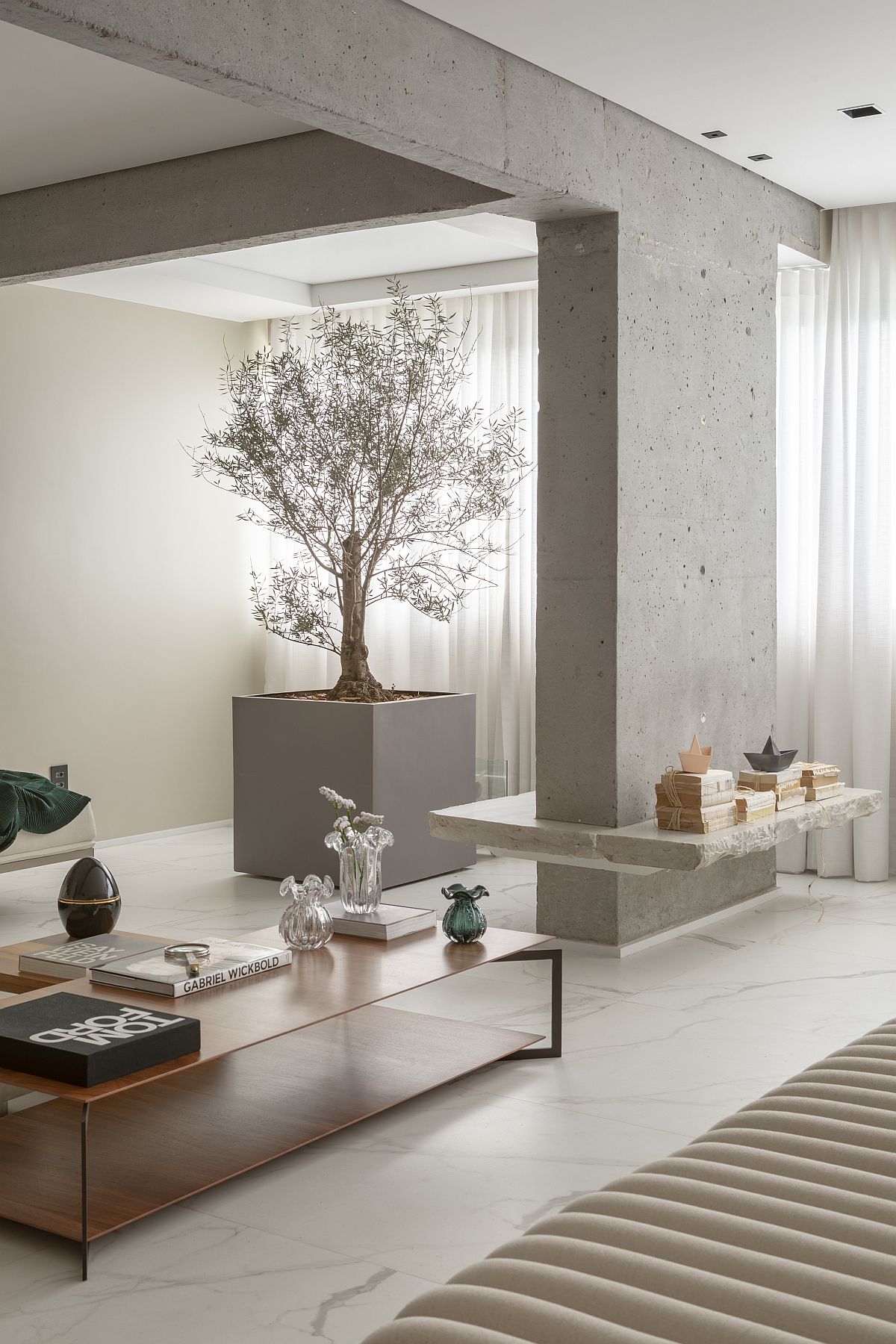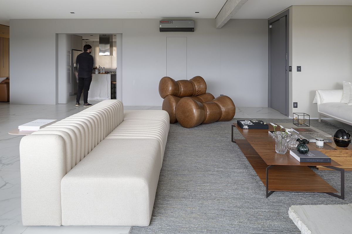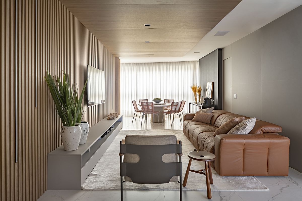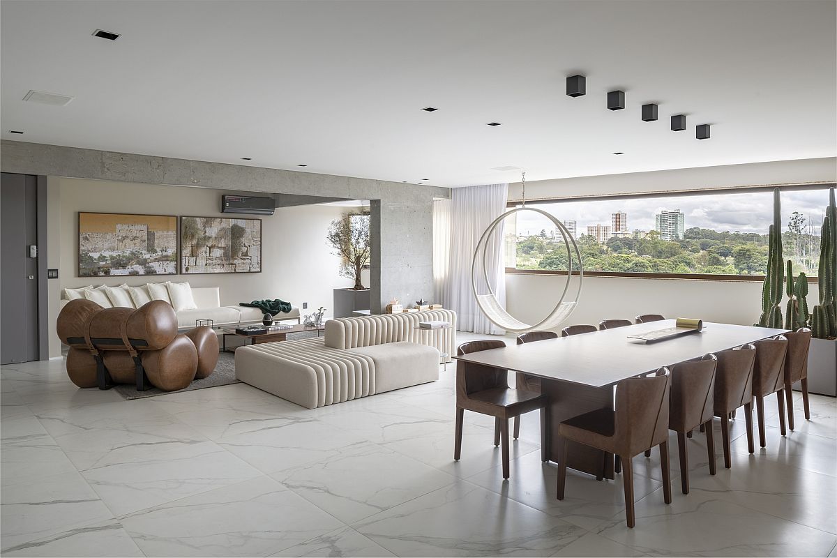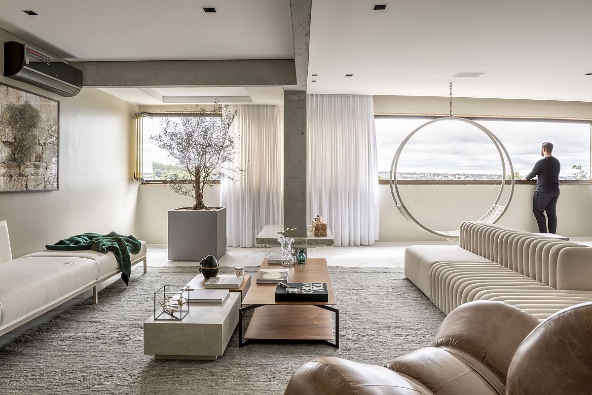 სახლი, რომელიც დიდი შუშაბანდით აგუა კლარას პარკს გადაჰყურებს, ნეიტრალურ ფერებშია გადაწყვეტილი. აქ ღია ყავისფერი, ნაცრისფერი, ბეჟი და კრემისფერი ფერები იკვეთება. მიმზიდველი დიზაინის გარდა, ბინის მთავარ ხიბლს დიდი და გაშლილი სივრცე წარმოადგენს.