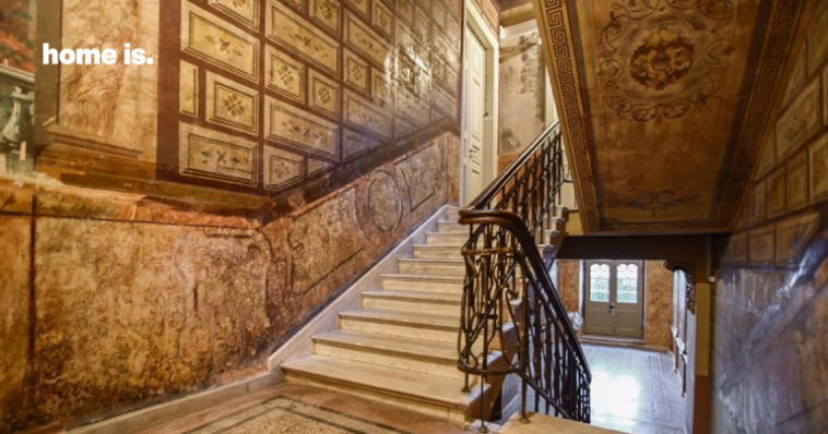 ვესტიბიულში გვხვდება ევროპული ქვეყნების ალეგორიული გამოსახულებები, კიბის უჯრედში კი – დეკორატიული ორნამენტები, კლასიციზმისა და ბაროკოს ელემენტები, რომანტიკული პეიზაჟები. დეკორში გამოყენებულია ე. წ. trompe d`oeil-ის მეთოდი, რომელიც სიბრტყეზე ილუზიის შექმნას გულისხმობს. ტექნიკა ძველი პომპეის ფრესკებიდან იღებს სათავეს. ასეთ ნამუშევრებში სივრცის უსაზღვროდ გაგრძელების ილუზია იქმნება. მაგალითად, კედელზე მოხატული ოთახი ან სადარბაზოებში გამოსახული ფერწერული ჩარჩოები ნამდვილობის ეფექტს ქმნის. ამგვარი მხატვრობა იმდროინდელი მოდის კუთვნილება იყო, რაც თბილისურ სახლებზეც აისახა.