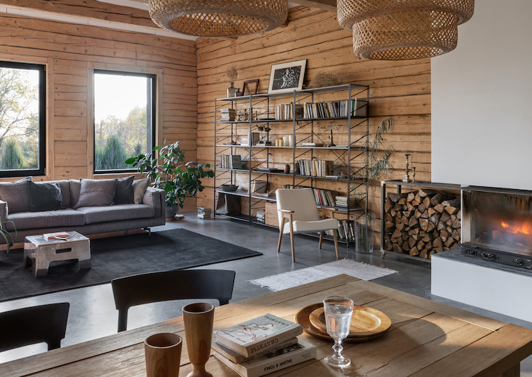 ინტერიერის თანამედროვე ელემენტებისა და დიდი ისტორიის მქონე ნივთების კომბინაცია ხელს უწყობს ოჯახის ხასიათის წარმოჩენას: მკაცრი, მაღალი და მინიმალისტური ბუხარი, სადა სკამები და უხეში ხის მაგიდა, პრიალა გაზქურის გამწოვი და მკაცრი სტილის სამზარეულო.. მზის შუქი და ბუნება ინტერიერის ძალიან მნიშვნელოვანი ნაწილია.