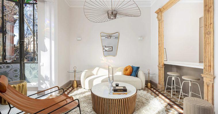 ეკლექტური დიზაინის ბინა ბარსელონაში უნიკალური დეტალებით გამოირჩევა. ინტერიერში ერთმანეთს ჰარმონიულად ერწყმის ესპანური, კლასიკური და თანამედროვე ესთეტიკის დეტალები და ერთიან, სახასიათო და ორიგინალურ სივრცეს ქმნის, რომელიც მნახველის ყურადღებას პირველივე დანახვისას იპყრობს.