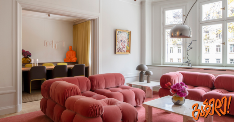 ელეგანტური ბინა სხვადასხვა ფერის ოთახებით