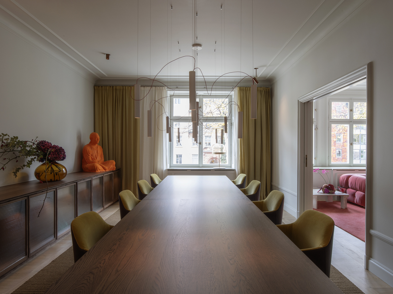 ბინა, რომლის შესახებაც დღეს გიამბობთ, სტოკჰოლმში მდებარეობს და მისი საერთო ფართობი 230 კვადრატული მეტრია. ვინაიდან მის მეპატრონეებს მოზარდი შვილი ჰყავთ, ინტერიერის დიზაინის შექმნის პროცესში მათთვის მთავარი ამოცანა მშვიდი და ამავდროულად საინტერესო გარემოს შექმნა იყო. ისინი წარმოიდგენენ მომავალ საცხოვრებელს როგორც ძალიან მყუდროს, მაგრამ ამავდროულად ფერადსა და ელეგანტურს. საბოლოოდ, მათ არჩევანი საკმაოდ თამამ და გამორჩეულ დიზაინზე შეარჩიეს, რაც გულისხმობს იმას, რომ ბინის თითოეული ოთახი განსხვავებულ ფერშია გადაწყვეტილი.
