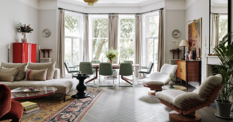 მეთიუ ჰილტონის ‘Light Extending Table’ შერწყმულია ტიმ ბეიტსის 70-იანი წლების “Elganza” სასადილო სკამებთან.