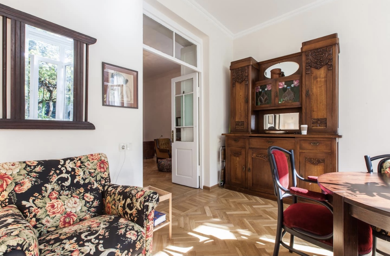 სახლი, რომელშიც ეს ბინა მდებარეობს, თითქმის საუკუნეა რაც აშენდა და პირვანდელ ხიბლს ამ დრომდე ინარჩუნებს. განსაკუთრებით აღსანიშნავია ბუხარი და მცირე ზომის ბაღი, რომელიც ბინას აქვს.