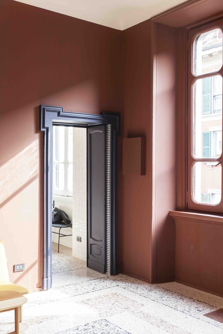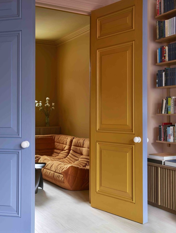 ოთახებს შორის გადასვლას ხაზი კარის დეკორით გაუსვით. კარის ჩარჩოები და გარე მხარე კედლის ფერში შეღებეთ, ხოლო შიდა ნაწილისთვის გამოიყენეთ კონტრასტული ფერი, რომელიც ოთახის დეკორაციას შეესაბამება.