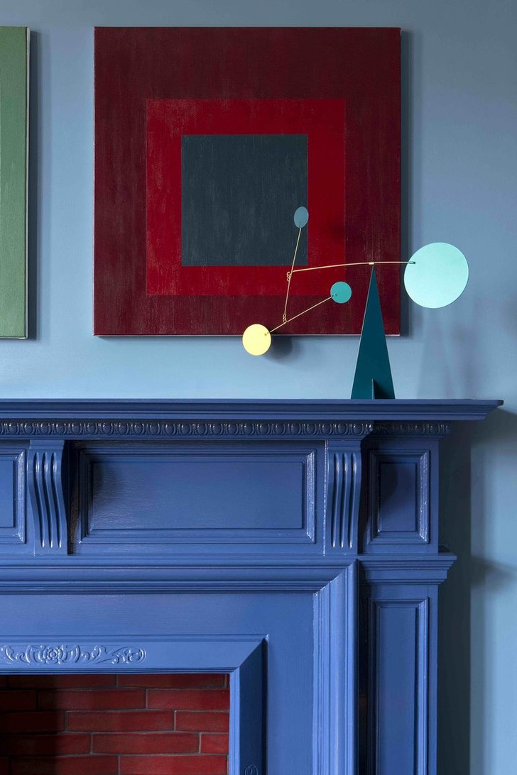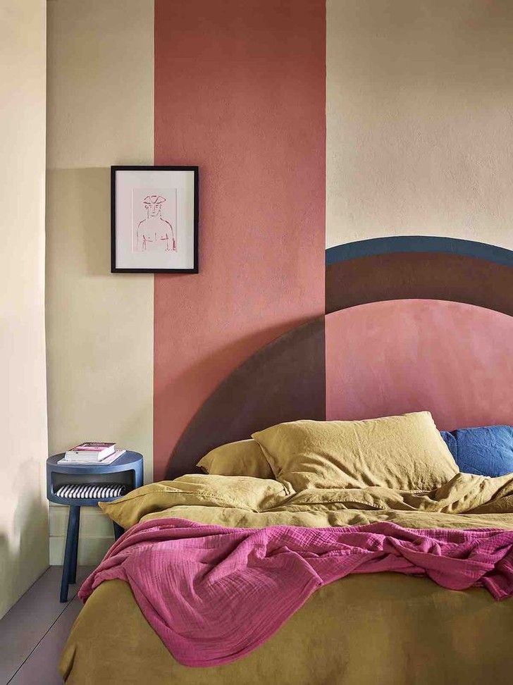 საწოლის თავზე არსებული გეომეტრიული ფიგურები, შეიძლება, კედლებისთვისაც გამოიყენოთ. თუ არ იცით, რომელი ფერი აირჩიოთ, შთაგონებად თქვენი საყვარელი ხელოვნების ნიმუში აქციეთ.